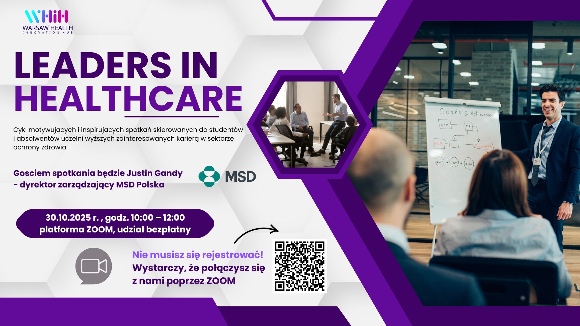 Rusza cykl spotkań „Leaders in Healthcare” w ramach Warsaw Health Innovation Hub. Spotkania skierowane są do studentów i absolwentów uczelni wyższych zainteresowanych karierą w sektorze ochrony zdrowia.